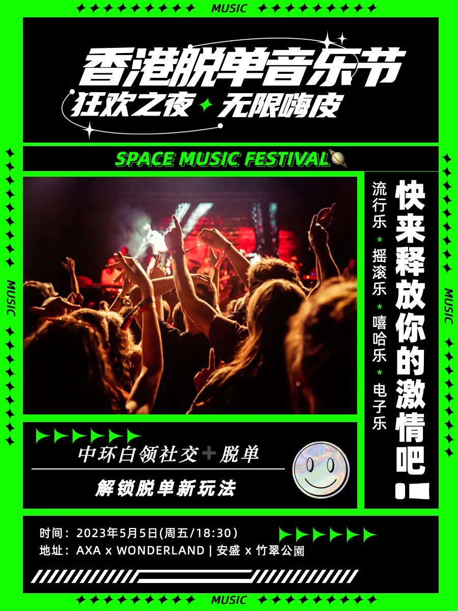 在暧昧的灯光和音乐下,单身男女们可以尽情释放压力,任性撒野~想想都感觉会玩的很开心!⬇️这种又好玩又能脱单的音乐盛宴,单身的你怎么能错过呢?