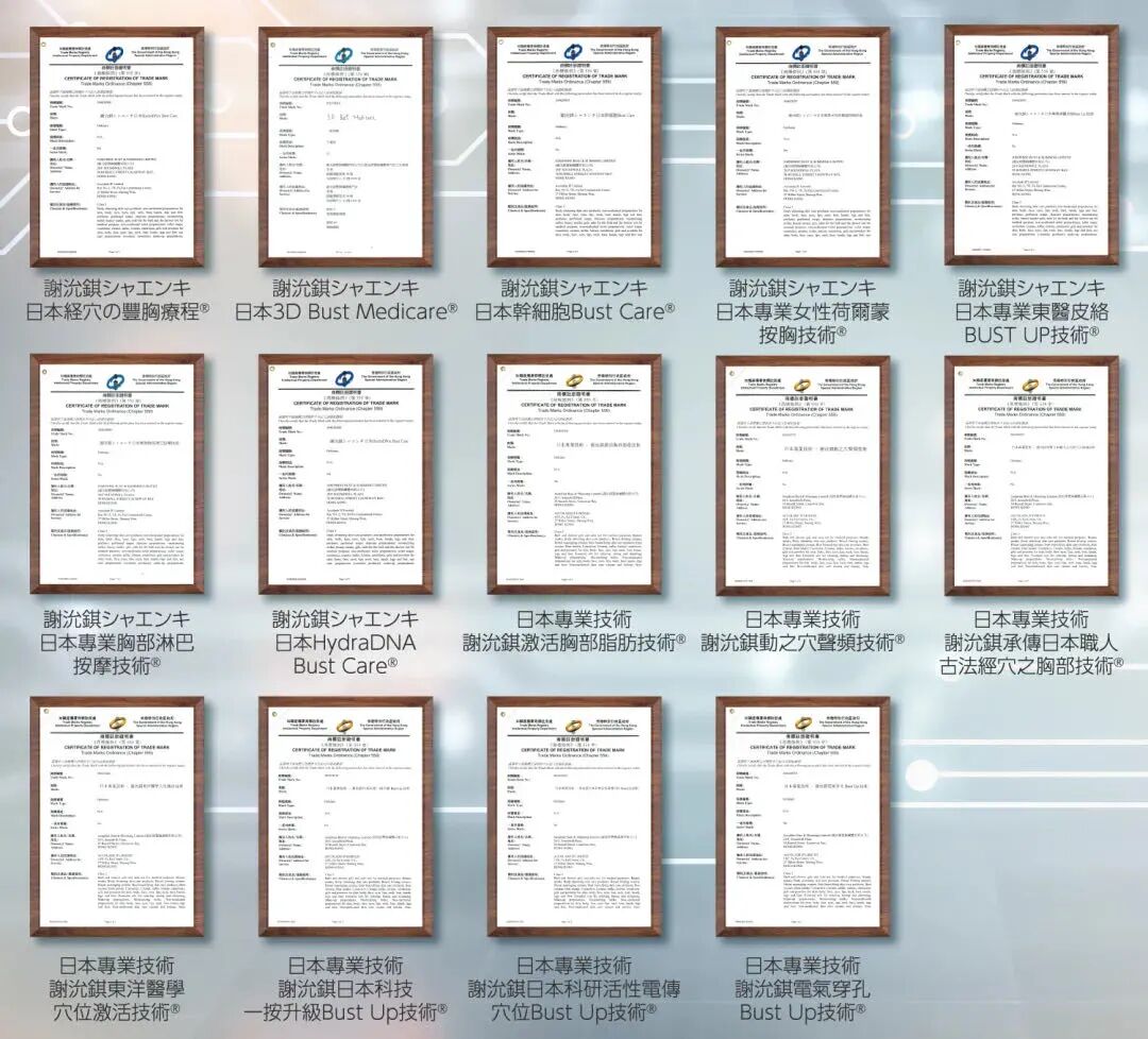 謝小姐深耕豐胸行業三十年,不僅是研究者,更是創作者、發明家。为了给客户带来完美显著的丰胸效果,多年来分别与日本不同科研医学团队合作,其中与拥有超过40年科研经验的日本名厂ECM株式会社共同研发最新丰胸技术,并注册了14项丰胸专利疗程,权威度以及专业性都有信心保证!