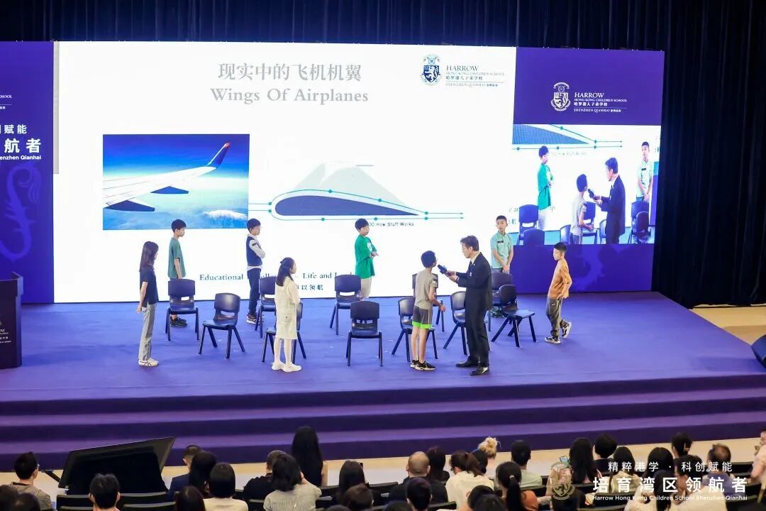 就拿前阵子的分享会来说吧,陈冈博士在模拟课堂上深入浅出,给同学和家长们现场讲明白了飞机起飞原理所涉及的粒子理论与空气动力学相关知识。校长还随机邀请了10-14岁小朋友参与模拟课堂,感受全人教育的课堂氛围。短短10分钟的模拟课,校长对课堂气氛的掌控力可见一斑,家长们也目睹了学校在STEAM科目上的教学特色!