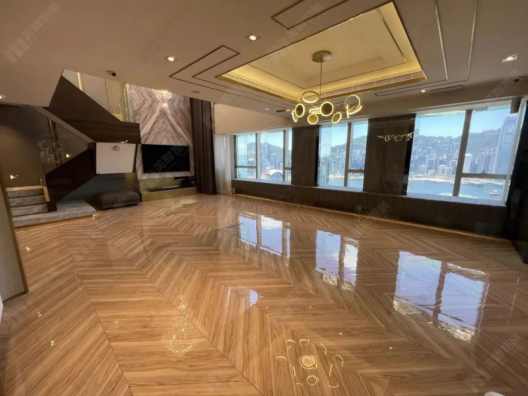 看到没,客厅一整面都是维港景观,而且正对中环。