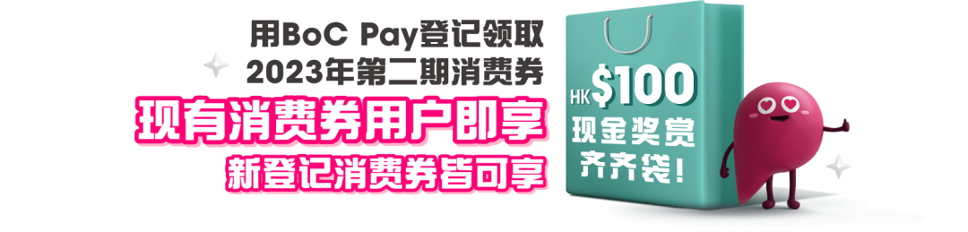 只要转会到BoC Pay,或是现在已使用BoC Pay领取消费券的客户来领取消费券,一样有100港元可以拿!