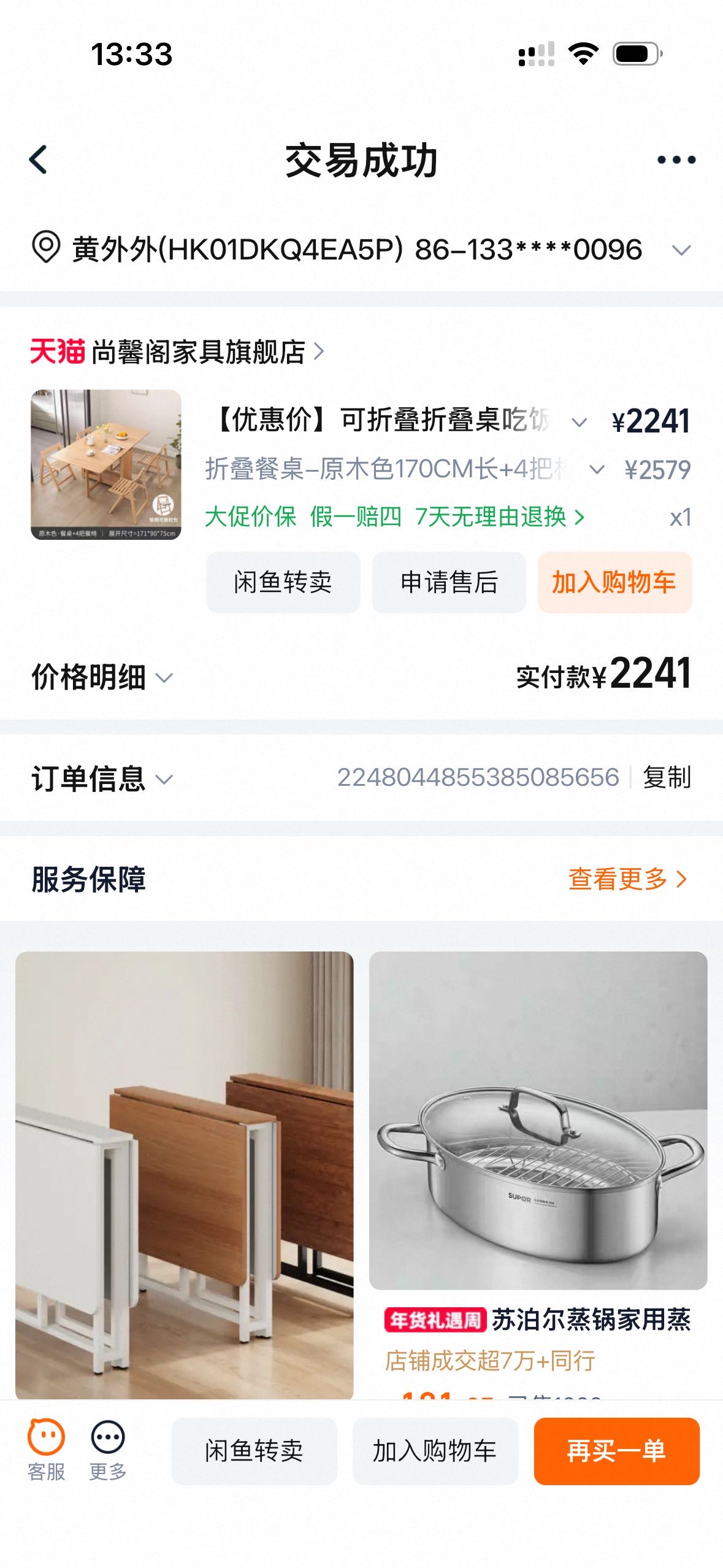 购入于淘宝尚馨阁家具旗舰店,2025年8月左右。质量极高,非常厚实。因为使用频率低觉得没有必要,所以便宜出,原价2241人民币,集运300人民币左右,现便宜出,港湾豪庭自取,1500人民币不讲价。