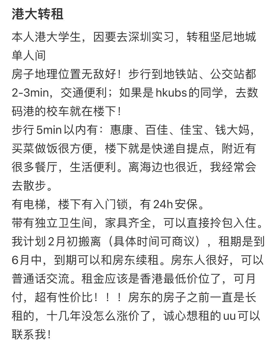 ?港岛北角急转短租!5个月/拎包入住/房东室友超好?