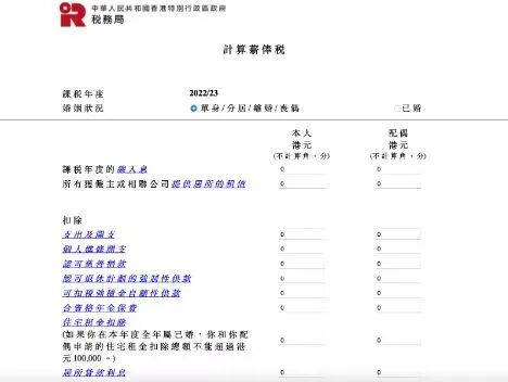 不需要自己一项项去计算,直接用香港税务局的税款计算器计算即可,清晰便捷。
