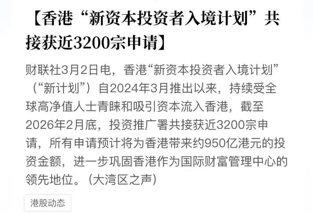 正是因为这种确定性,一场史无前例的“存款大搬家”正在发生。就在这两天,香港官方公布投资移民计划成果,才搞了不到两年,申请竟然破了3200宗。算下来,有整整950亿港币正排着队冲进香港。这几千个全球最精明的大脑,已经替大家把坑踩完了。他们要的,就是财经作家吴晓波说的那块“压舱石”。它不一定让你一夜暴富,但它能在任何风浪里保住大家的底线。香港不只是个金融中心,更像是一套成熟、高效、稳定的“财富基建”。