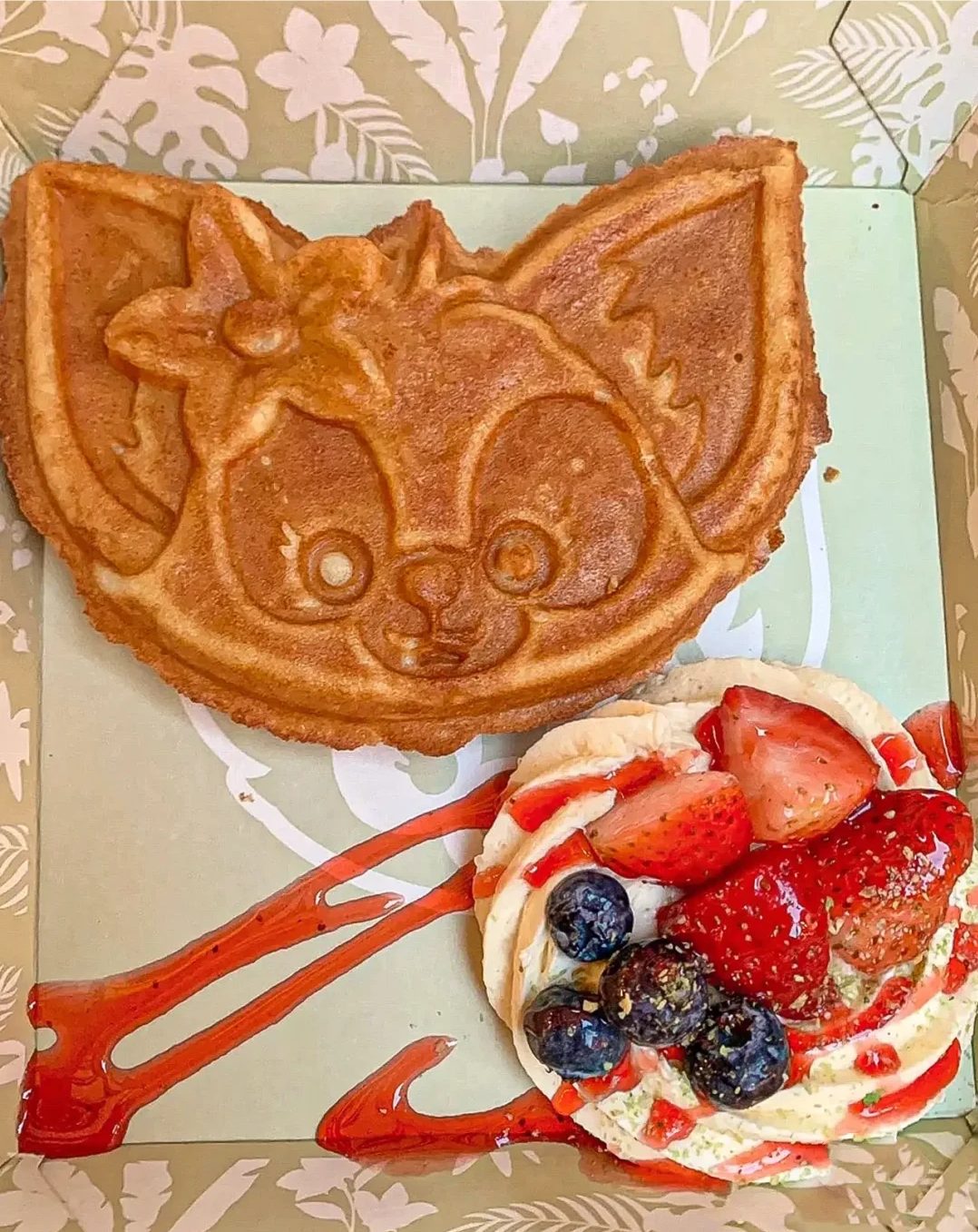 在存放行李外的小吃亭,都是迪士尼明星造型的窝夫,其中女明星贝儿的最好看!虽然是下午茶,但是很厚实,饱腹感很强,还配有爽口的草莓和蓝莓。