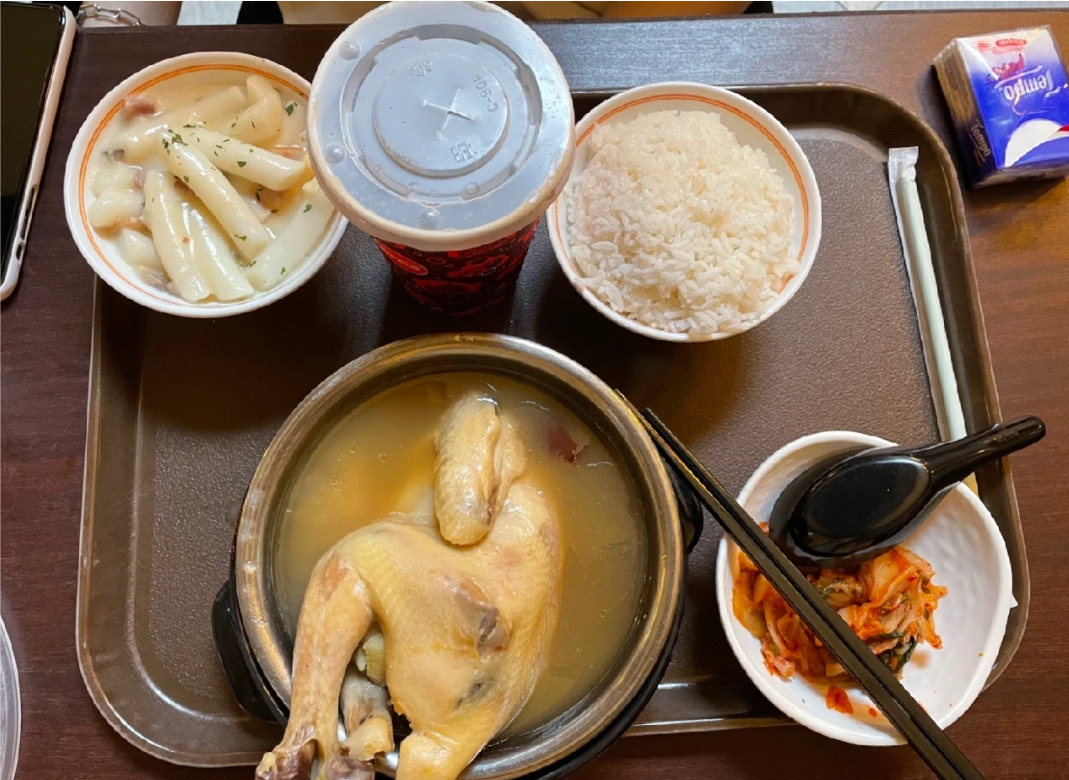 人参炖鸡汤套餐的份量超级足的!两个饭量小的点上一份就够吃了,人参炖鸡汤用的是完整的一只的鸡,鸡肚里装了人参、红枣和糯米 鸡肉吃起来很嫩,鸡汤味道也很香。