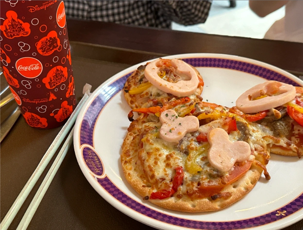 皇家宴会厅里米奇造型的pizza,搭配一杯饮料,喜欢打卡拍照的小伙伴首先就不能错过,超级出片!