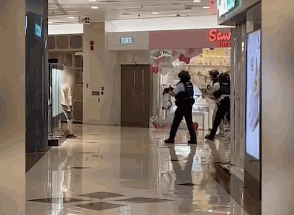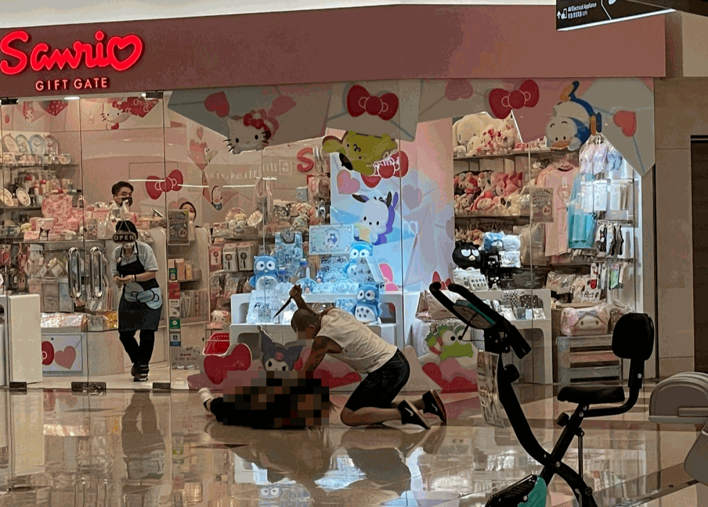 从另一段片段所见,两名遇袭女伤者倒卧在地,同告昏迷,有见义勇为的市民即场为她们施以心外压急救,而凶徒靠着商场围栏呆站,一脸冷漠凝视案发现场。他的脚部及波鞋染血,手上仍持有凶刀。有目击者指当时有英勇市民双手持櫈并拍打凶徒制止对方,事后又站在凶徒旁边戒备。