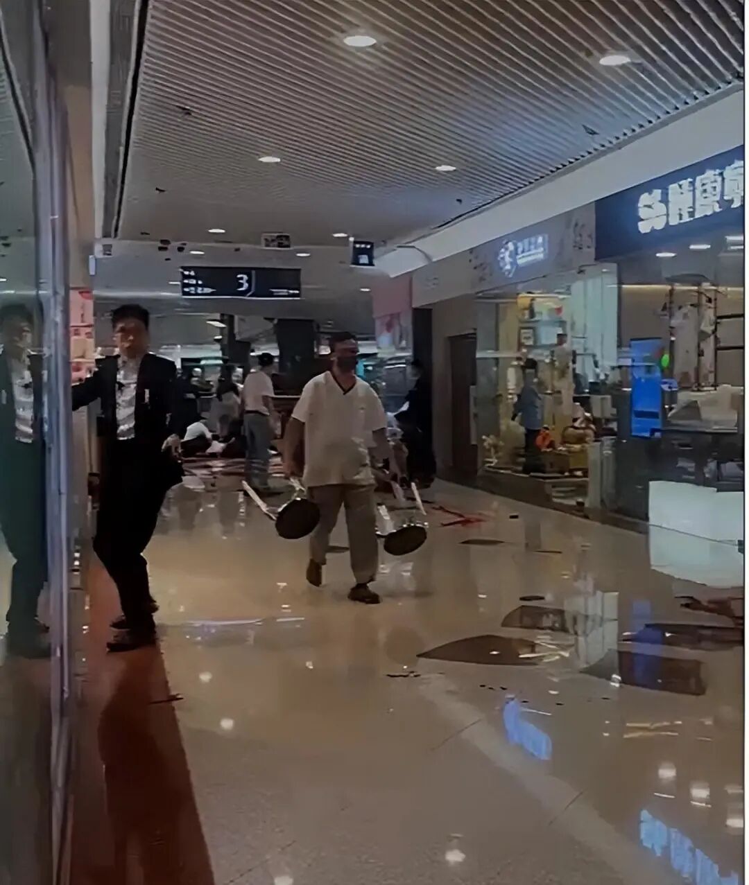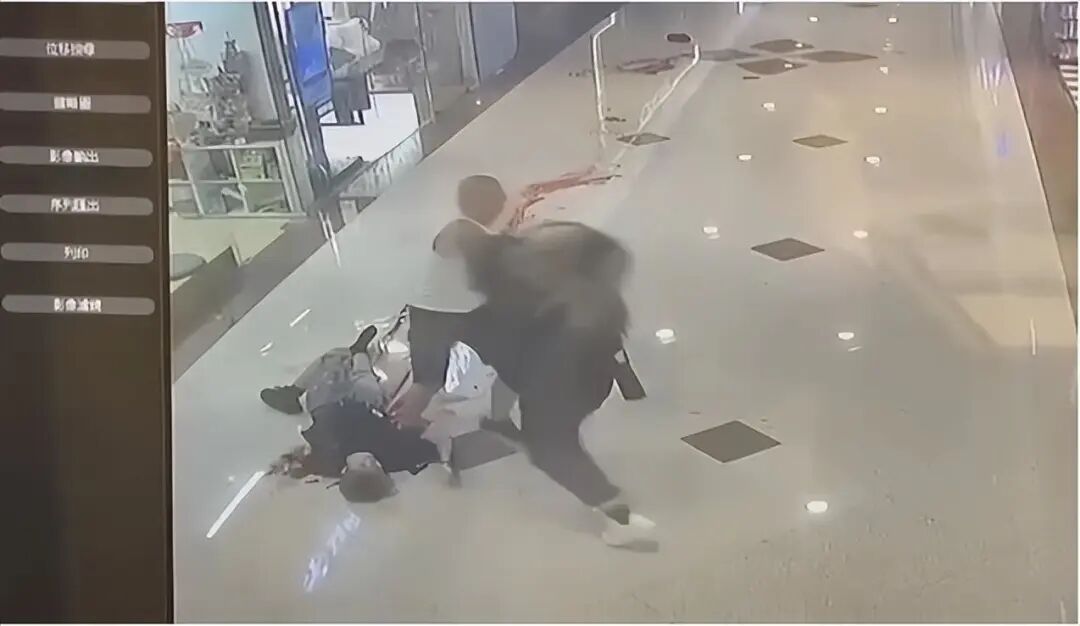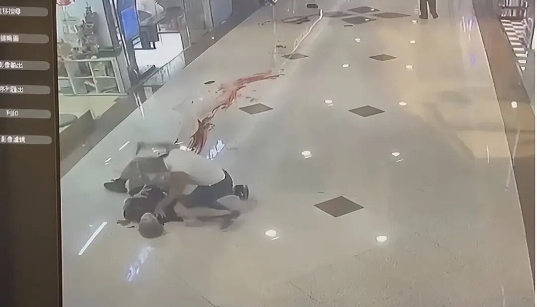 凶刀已呈弯曲状态,商场走廊变血路
