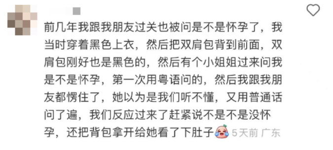 还有人曾经把包背在前面,却被误会是想挡着肚子: