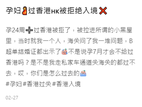 博主出示了B超单、结婚证等等,也跟海关解释自己是当天去当天回,并且已经在内地订好了生产医院、月子中心等等,并没有想在香港生小孩。